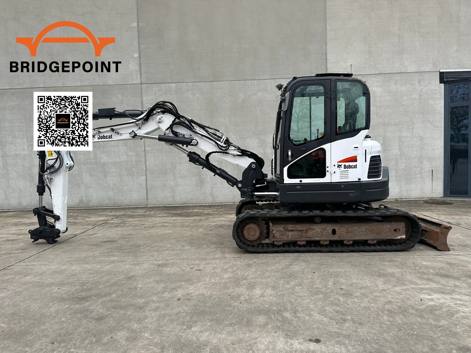 🔹 Bobcat E85 – poznat po robusnoj izvedbi, snažnoj hidraulici i dubini iskopa u klasi midi bagera (~4,6 m za standardnu konfiguraciju).