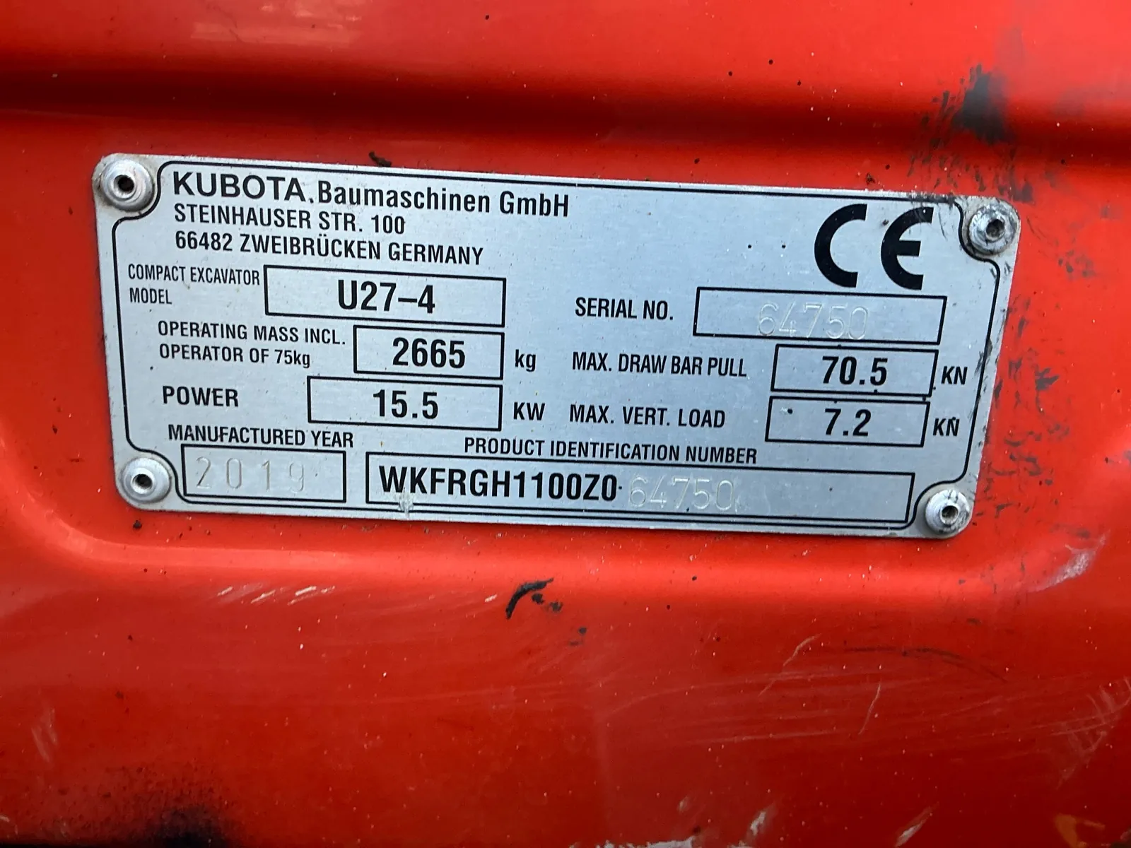 Kubota U27-4 / 2019 / 3911 radnih sati